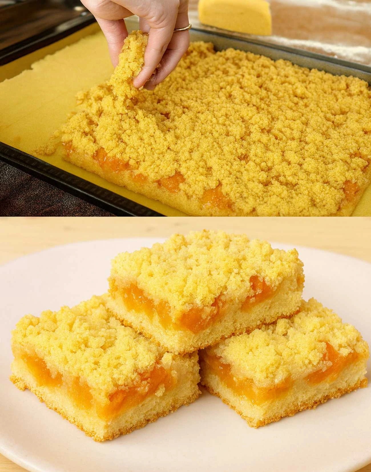 Jednoduchý recept na hrnkový meruňkový koláč s křupavou drobenkou – ingredience bez vážení, rychlý postup, celkový čas přípravy a počet porcí pro vaši odpolední pohodu.