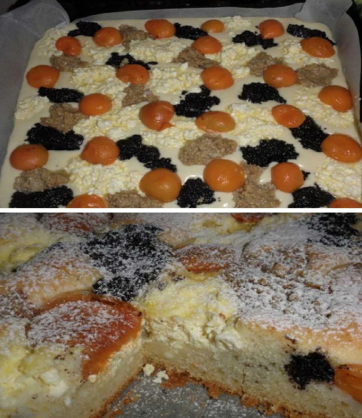 Tento šťavnatý kopečkový koláč kombinuje tři klasické náplně – ořechovou, makovou a tvarohovou – doplněné meruňkami. Díky vláčnému litému těstu je ideální na rodinné oslavy, víkendové pečení i běžné dny, kdy máte chuť na poctivý domácí moučník.