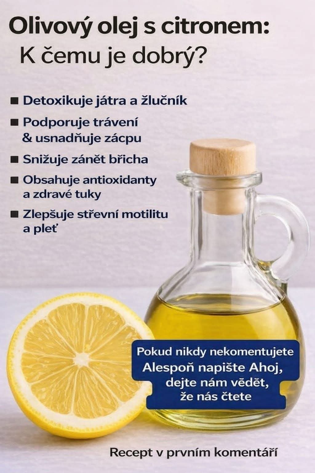 Ve světě přírodních prostředků je jen málo kombinací tak jednoduchých a přesto silných jako olivový olej s citronem. Tato přírodní směs, používaná po staletí v tradiční středomořské medicíně, si nadále získává oblibu díky modernímu výzkumu potvrzujícímu mnohé z jejích zdraví prospěšných vlastností. Pití olivového oleje s citronem nalačno je každodenním zvykem, který může pomoci očistit tělo, zlepšit trávení a podpořit celkovou pohodu. Níže najdete 25 osvědčených a tradičních výhod užívání olivového oleje s citronem a navíc, jak jej správně připravit.