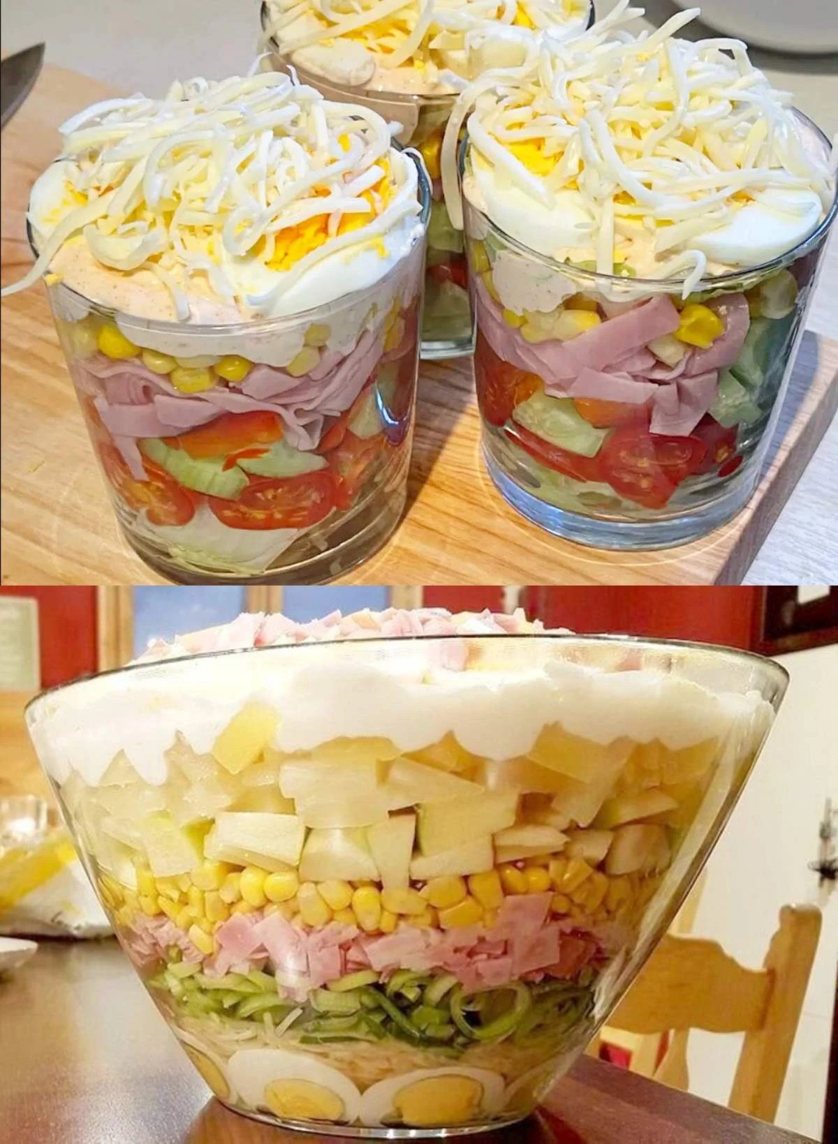 Některé recepty si získají oblibu hlavně proto, že nezaberou moc času a přitom vypadají na stole skvěle. Přes noc vrstvený salát patří přesně mezi ně. Stačí pár běžných surovin, průhledná mísa nebo sklenice a trochu trpělivosti při chlazení. Druhý den je salát krásně rozleželý, jemný a chuťově mnohem výraznější než hned po přípravě.