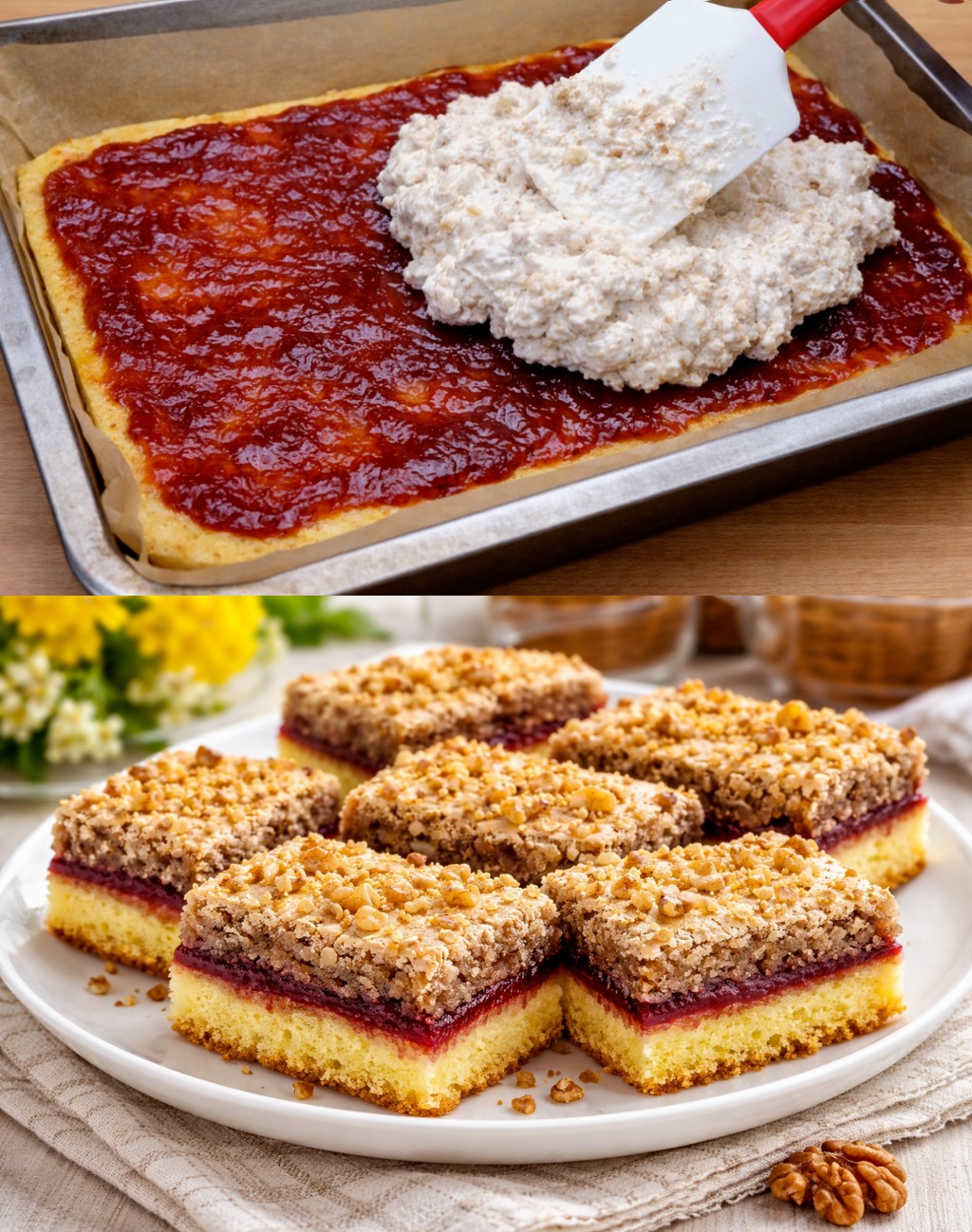 Právě kontrast mezi sladkým a kyselým je tím, co dělá tento moučník tak výjimečným. Velkou výhodou těchto řezů je také jejich jednoduchá příprava. Hodí se jako dezert k odpolednímu šálku kávy, nebo jako pohoštění pro nečekanou návštěvu.
