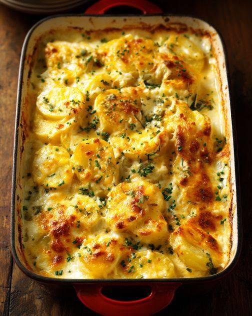 Tento krémový bramborový a kuřecí gratin je jedním z těch uklidňujících pokrmů, které přilákají ke stolu každého. Tato verze, založená na klasickém francouzském gratinu, mu dodává nádech středozápadu s přídavkem křehkého kuřete. Je ideální pro útulné rodinné večeře nebo když máte na návštěvě přátele a chcete s minimálním úsilím zapůsobit. Jeho krémové vrstvy brambor, kuřete a sýra z něj dělají vydatné jídlo, které zahřeje srdce i duši. Navíc je to skvělý způsob, jak zužitkovat zbylé kuře, což z něj činí pohodlnou volbu pro rušné všední večery.