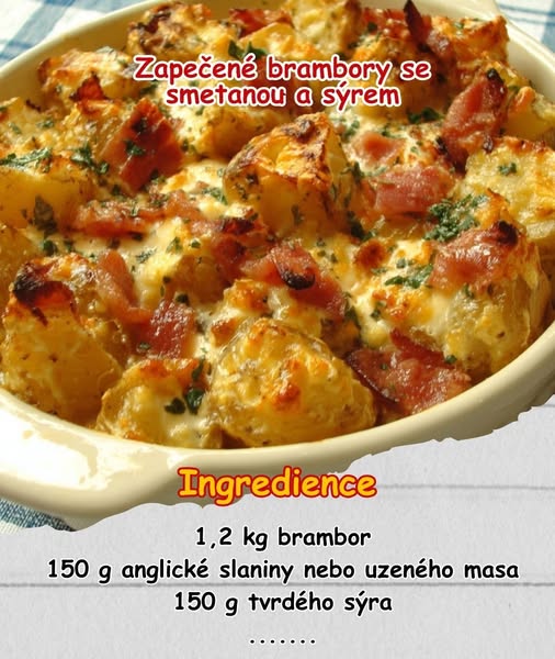 Zapečené brambory se smetanou a sýrem patří mezi nejoblíbenější domácí pokrmy české kuchyně. Spojení jemné smetany, rozpečeného sýra a dozlatova upečených brambor vytváří neodolatelnou kombinaci, která se hodí jak na rodinný oběd, tak na večeři s přáteli. Tento recept je jednoduchý, ale přesto bohatý na chuť, a díky přidání opečené slaniny získá pokrm ještě výraznější aroma.