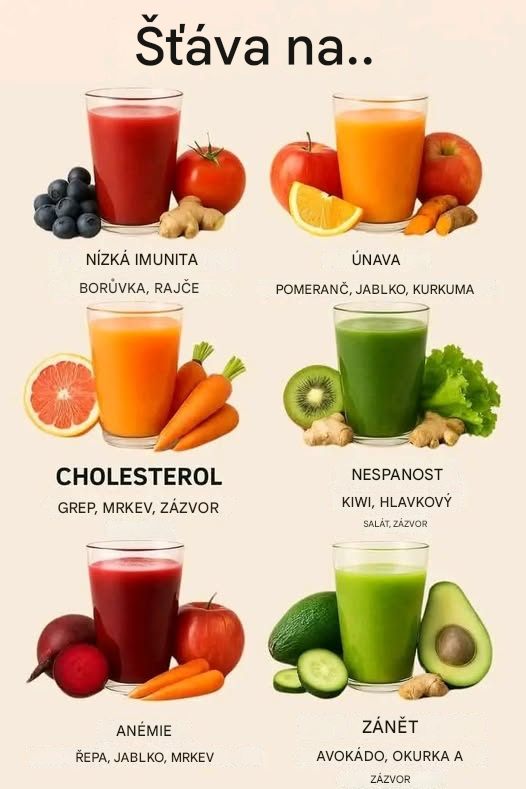 Objevte účinné přírodní šťávy pro podporu imunity, snížení cholesterolu, boj s únavou a nespavostí. 100% přírodní recepty pro vaše zdraví a vitalitu.