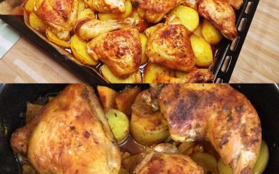 Zapečené kuřecí stehna s bramborami a smetanovo-hořčičnou omáčkou na jednom plechu